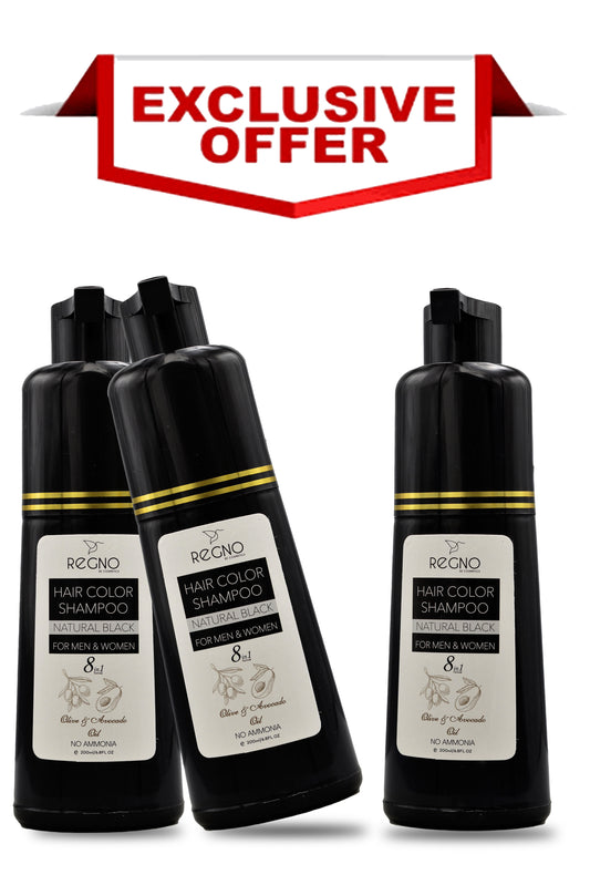 Regno Premium Natural Black Hair Color Shampoo with Regno Sunblock.